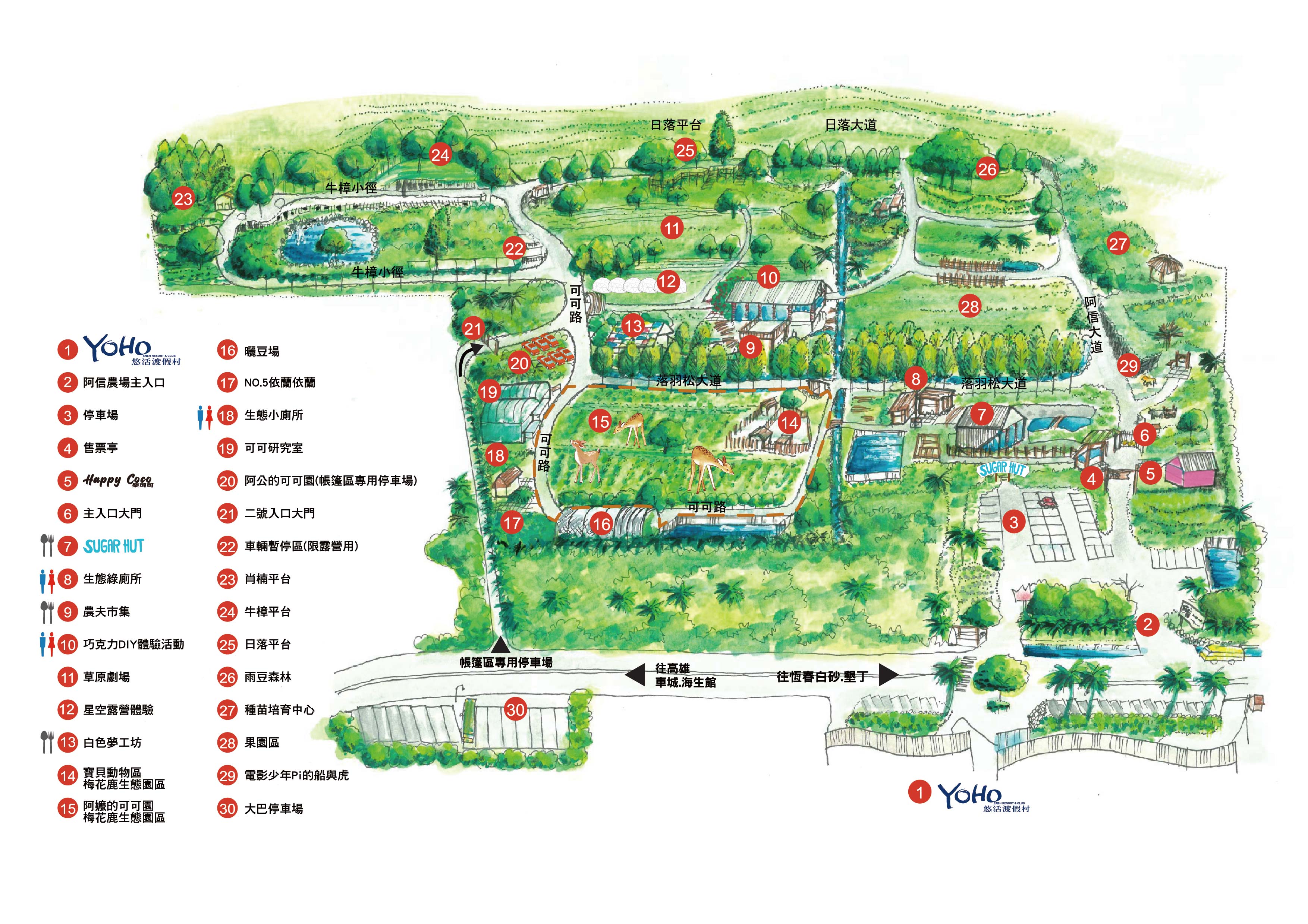 園區地圖 − 阿信巧克力農場有許多迷人的設施,歡迎來一探究竟